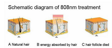 hair follicle melanin by specific wavelength of laser absorption, and the heat exchange to destroy hair